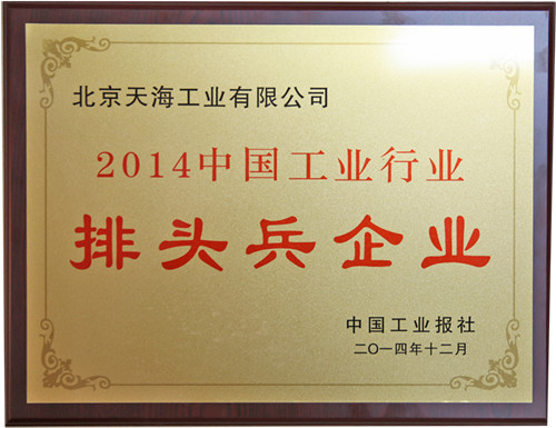12月13日,由中國(guó)工業(yè)報(bào)主辦的2014中國(guó)工業(yè)行業(yè)排頭兵企業(yè)發(fā)展論壇在京召開(kāi)。會(huì)上,北京天海工業(yè)有限公司榮獲“2014年中國(guó)工業(yè)行業(yè)排頭兵企業(yè)”榮譽(yù)稱號(hào)。