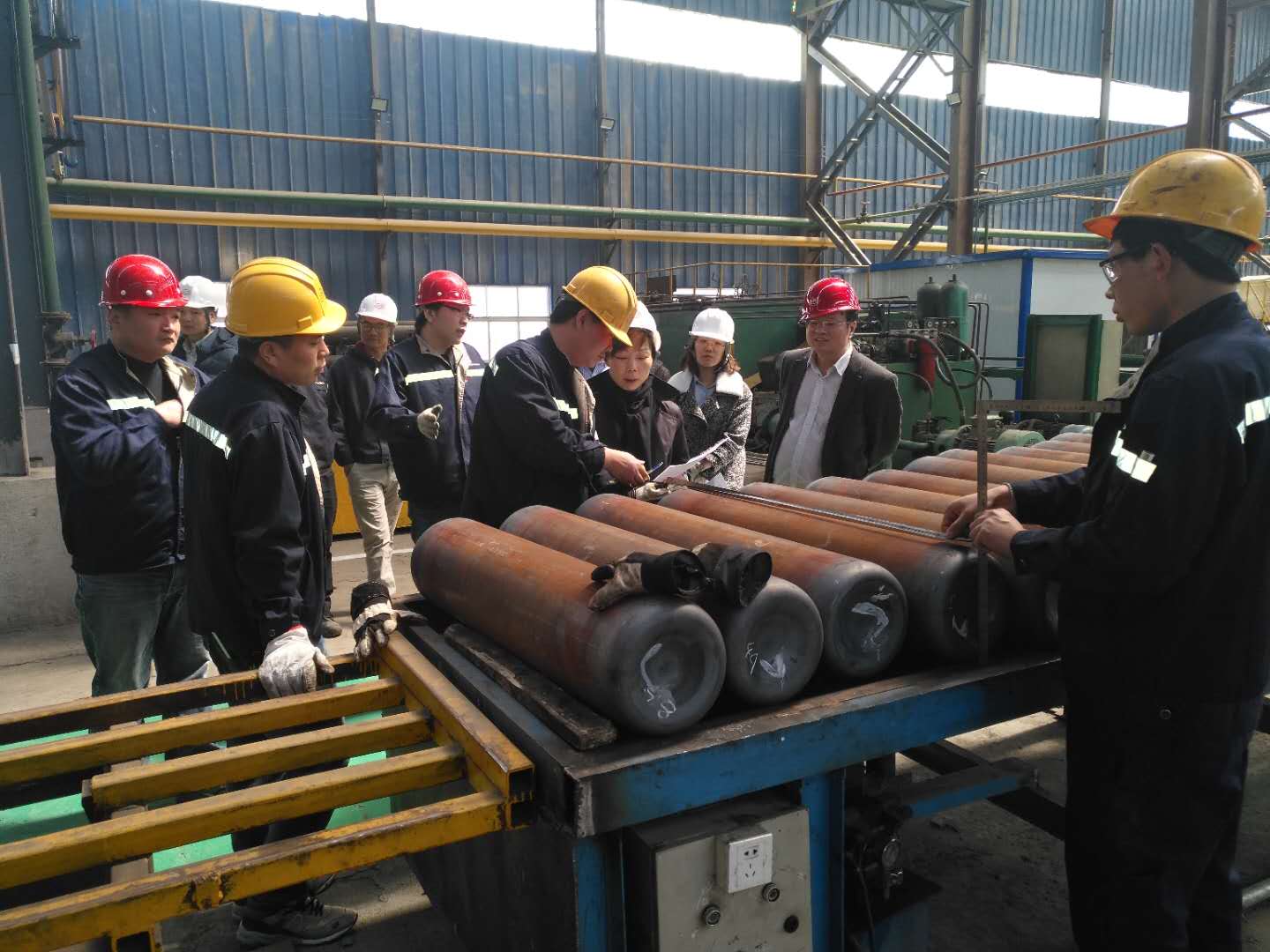 AP公司專家就寬城天海生產(chǎn)的的產(chǎn)品規(guī)格、技術(shù)參數(shù)、工藝指標(biāo)做了詳細(xì)的了解,并就產(chǎn)品的型式實(shí)驗(yàn)、取證和投產(chǎn)等工作的時(shí)間線達(dá)成初步共識(shí)。隨后專家組一行參觀了寬城天海沖拔瓶車間、管制瓶車間和冷加工車間。